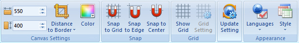 You can go to "Config" tab on the ribbon menu to set the canvas.