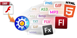 A high-performance Flash decompiler for you to convert SWF to FLA or FLEX precisely; Easily extract all Flash resources; Convert Flash to html5 files; Replace image/shape/text/sound for SWF. It is the first decompiler to get XFL from Flash CS5 SWF.