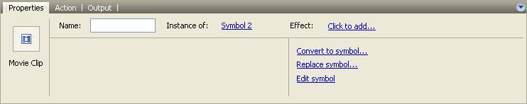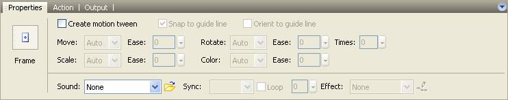 The Properties panel is to set the properties of the selected element, which could be main movie, shape, movie clip, button, sound, text, video, group or frame.